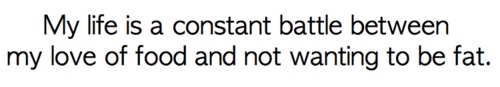 "My life is a constant battle between my love of food and not wanting to be fat."